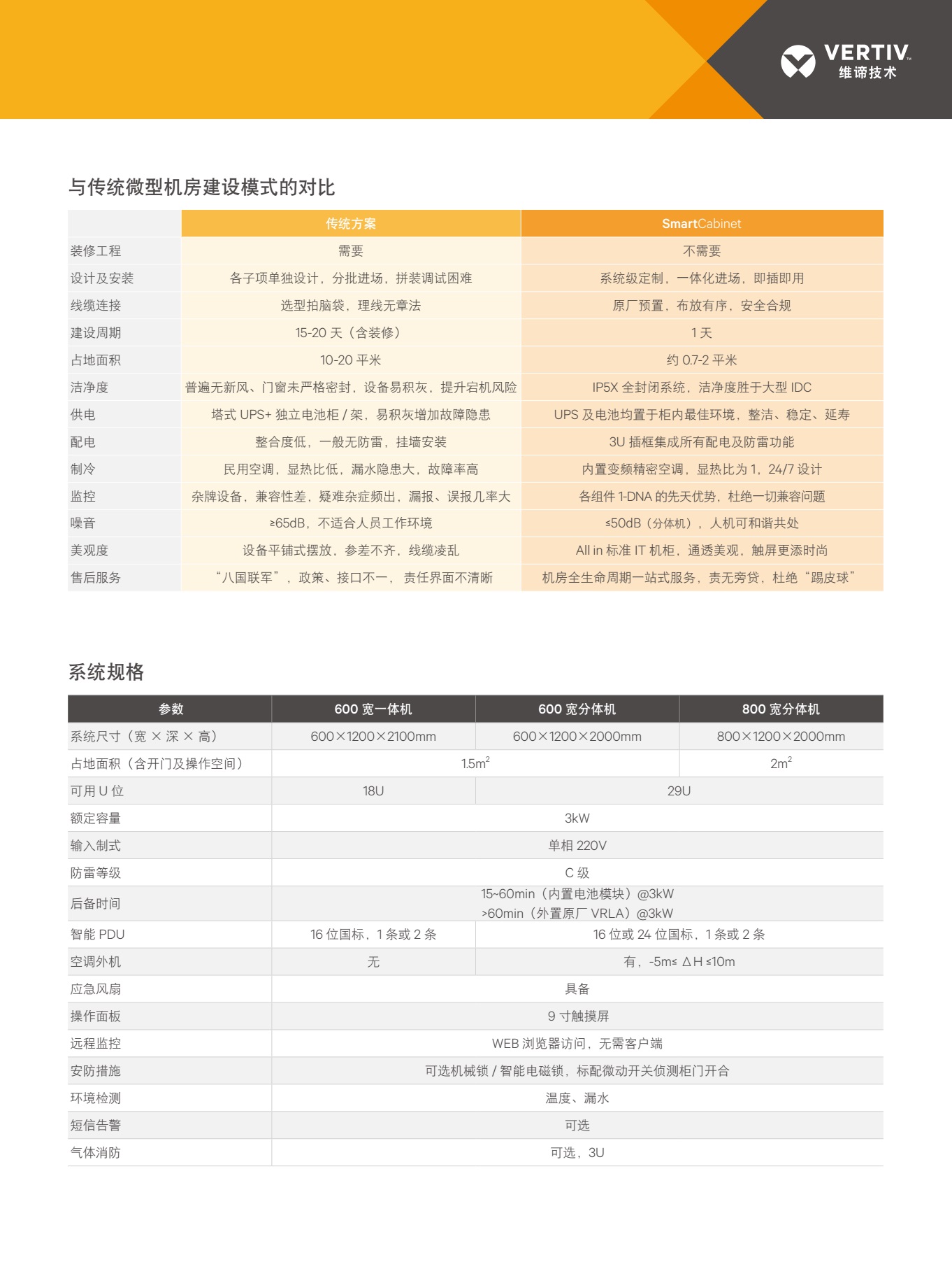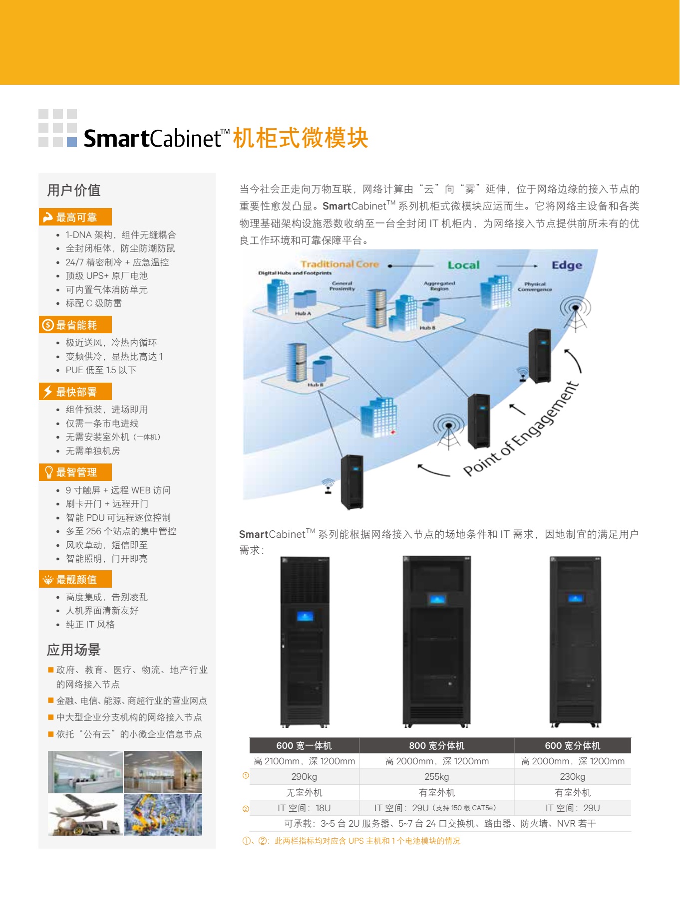 Vertiv SmartCabinet 微型数据中心解决方案,为您提供机柜级的整体机房理念,引领行业内微型/ 接 入型机房的 PLUG & PLAY 全新建设标准,为您带来IT 基础设施建设和使用的革命性体验。
