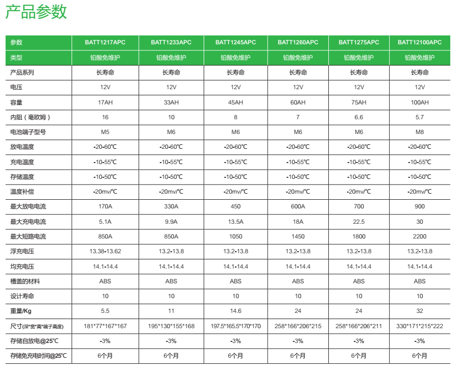APC电池主要特点